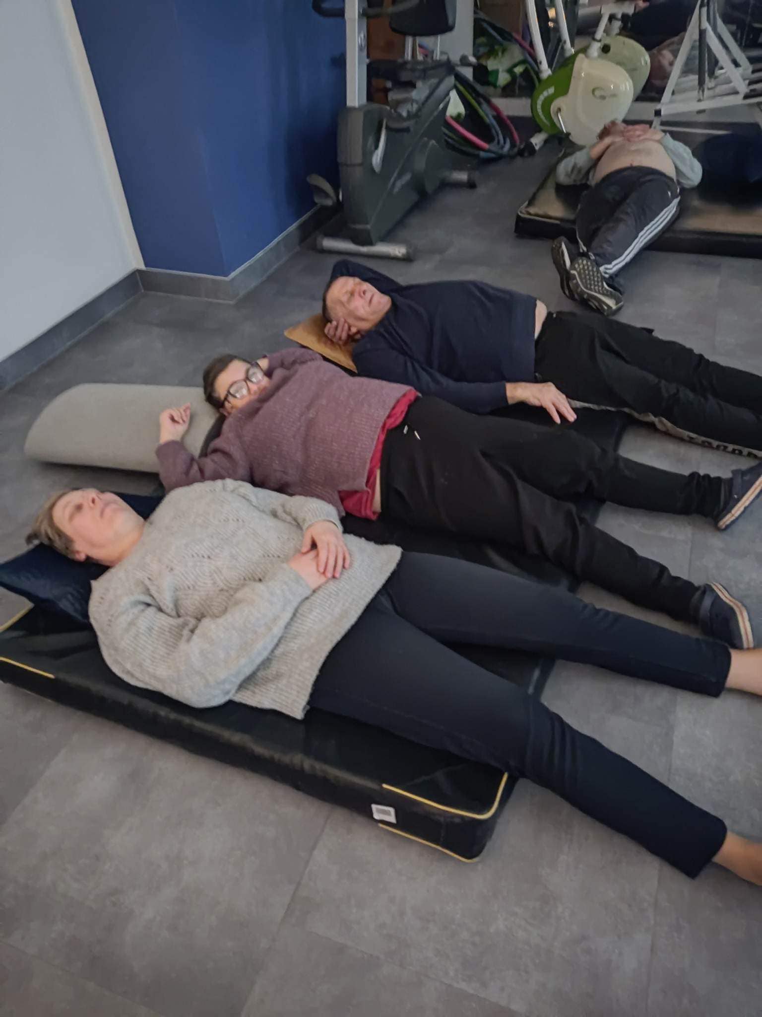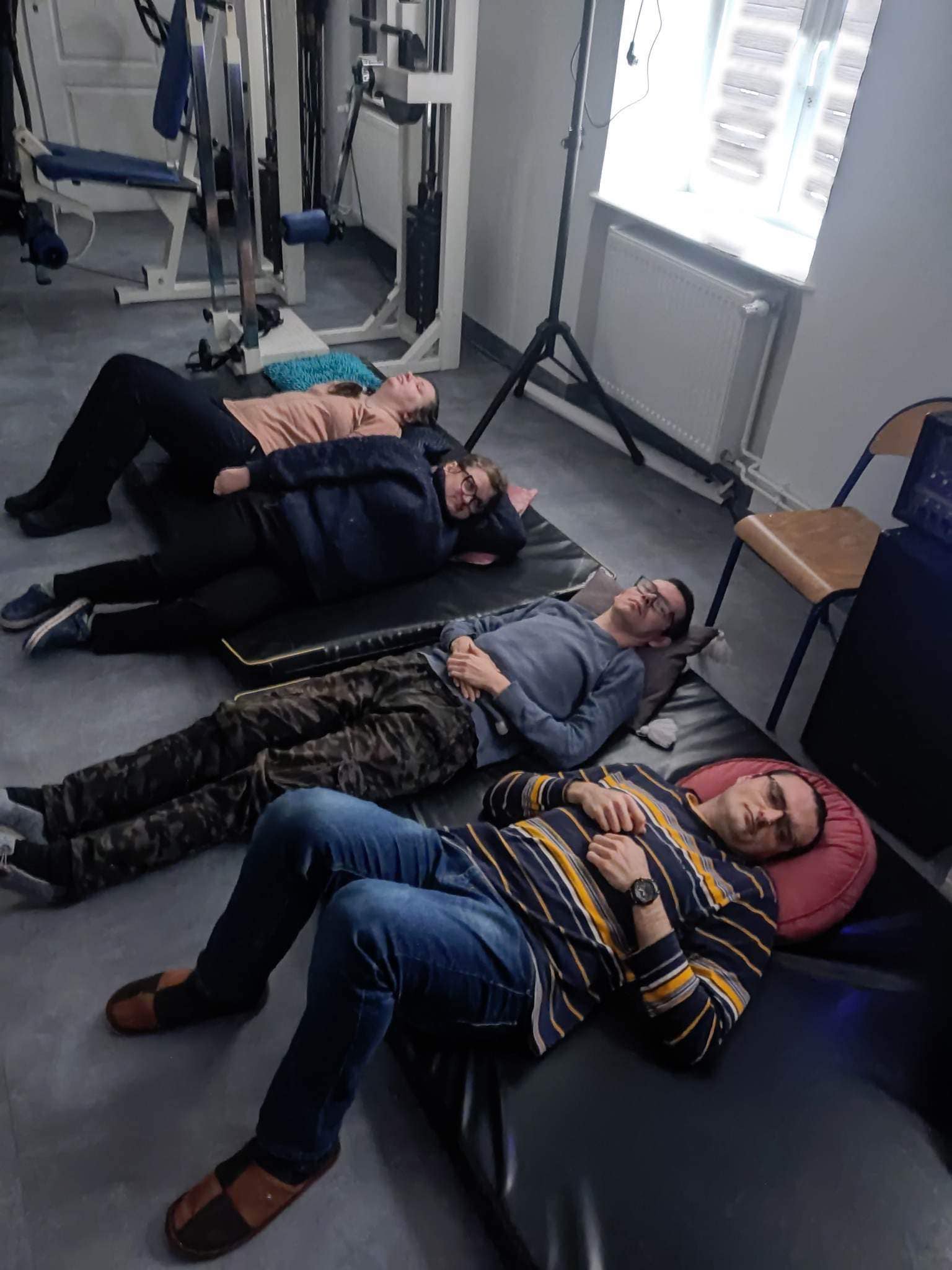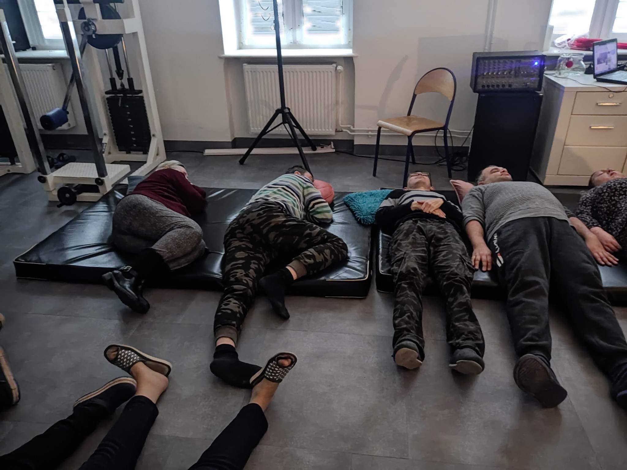 Zajęcia relaksacyjne 🧘🏼‍♂️na sali gimnastycznej. Chwila odpoczynku przy spokojnej muzyce wycisza i relaksuje i odpręża.